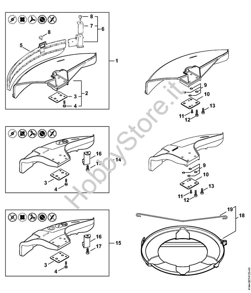 Ricambio Riparo completo Decespugliatrici (FS) FS 44 STIHL Contiene anche i ricambi da n. 2 a 8