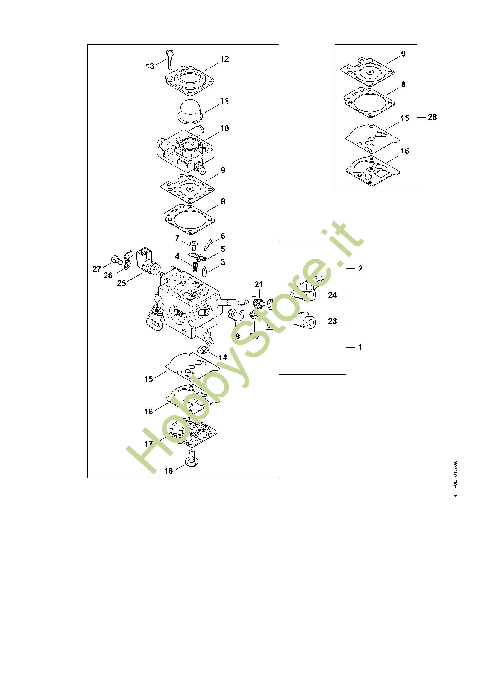 Ricambio Carburatore WTF-12A Decespugliatori (FS) FS 460 C-EM K STIHL Contiene anche i ricambi nr. da 3 a 23, 25 a 27