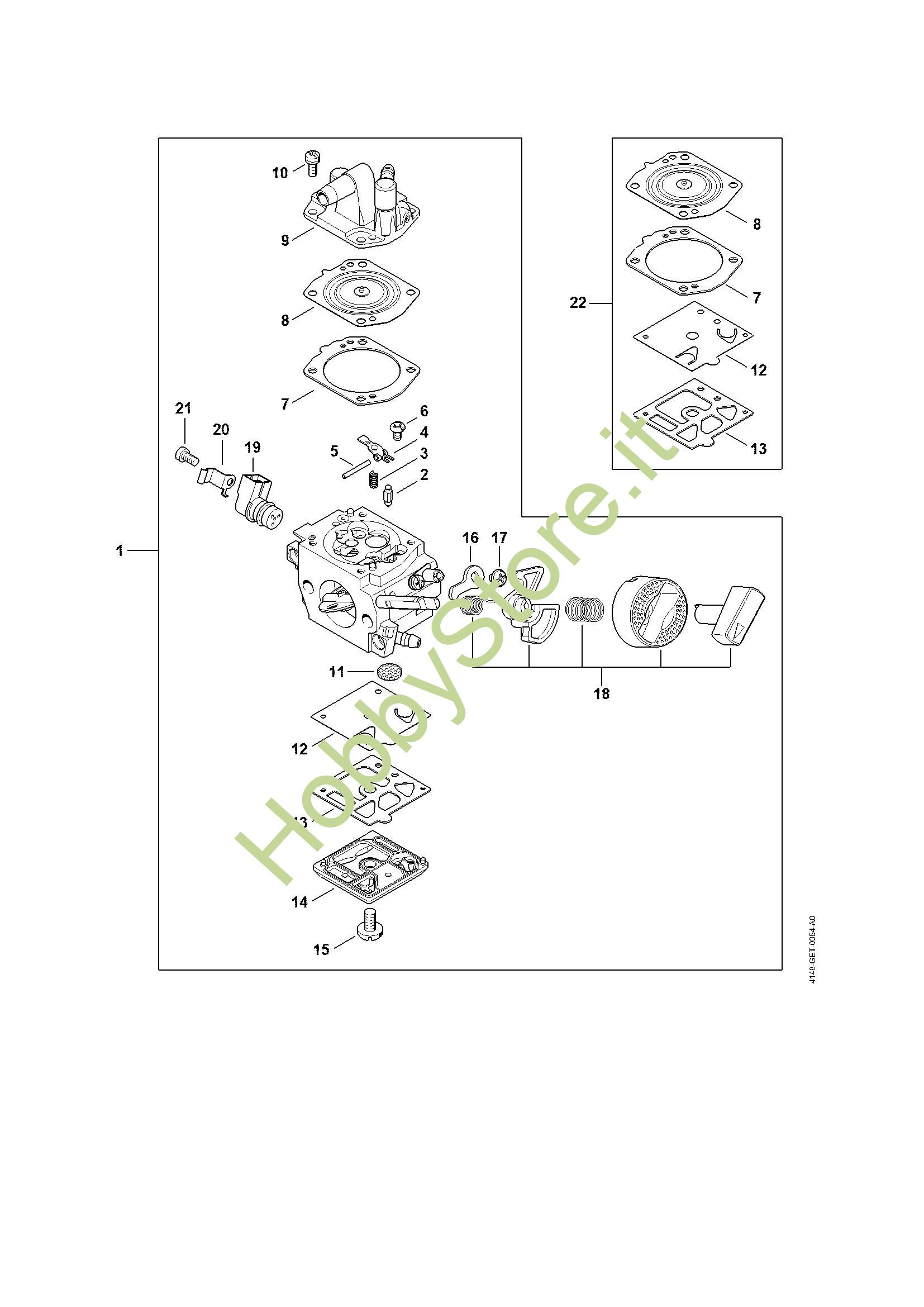 Ricambio Carburatore HDA-348A Decespugliatori (FS) FS 491 C-EM STIHL Contiene anche i ricambi da n. 2 a 21
