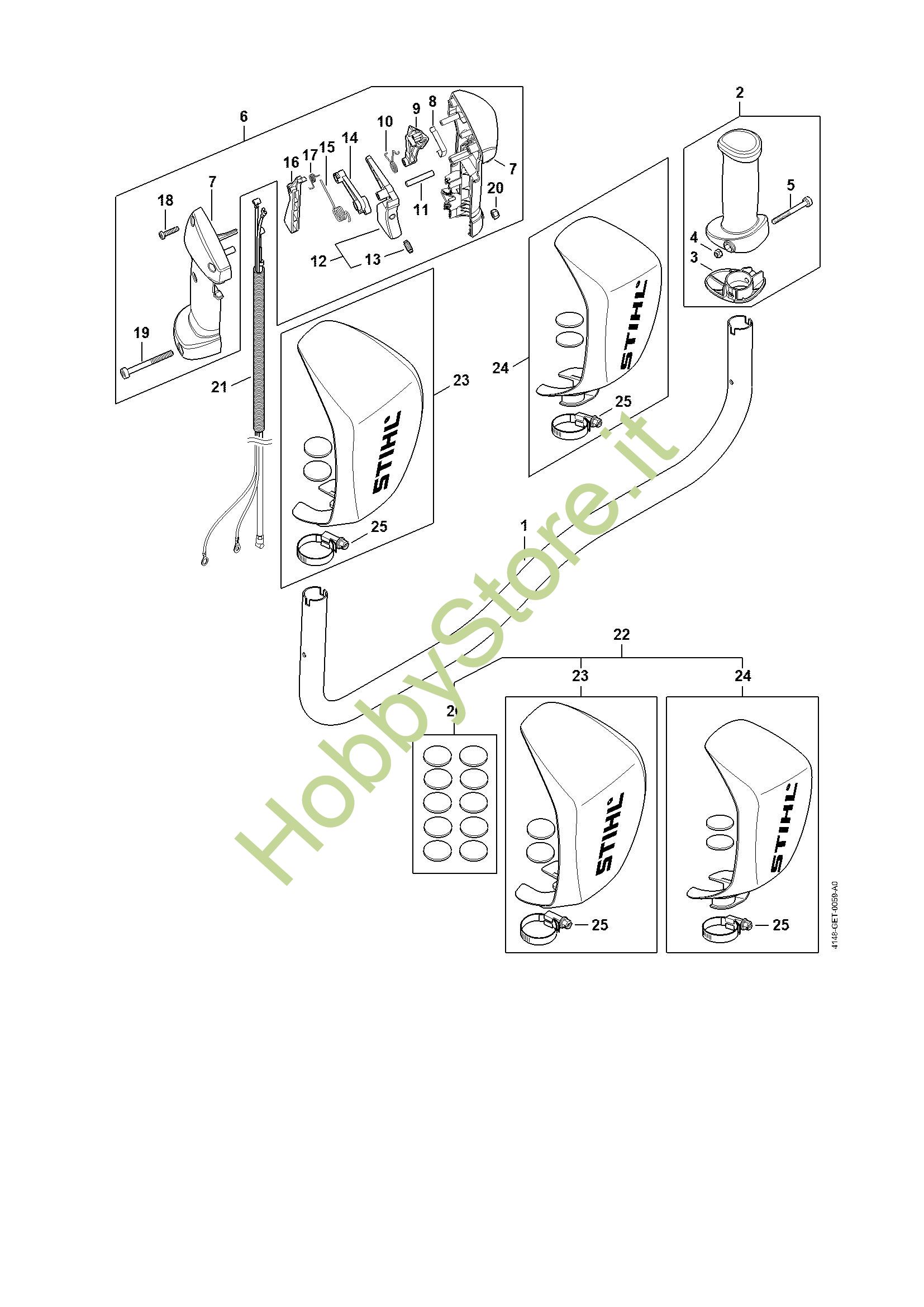 Ricambio Impugnatura di comando Decespugliatori (FS) FS 491 C-EM STIHL Contiene anche i ricambi da n. 7 a 20