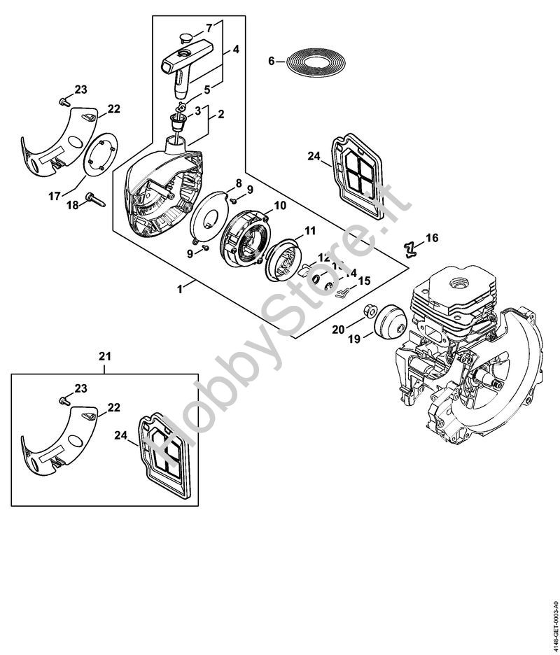 Ricambio Serie piastre copertura Decespugliatori (FS) FS 560 C-EM STIHL Contiene anche i ricambi da n. 22 a 24