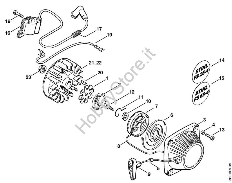 Dispositivo avviamento, impianto di accensione Decespugliatrici (FS) FS 65-4 della marca STIHL