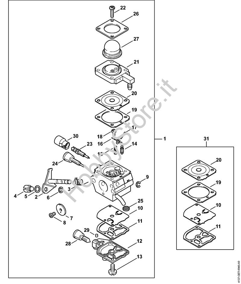 ATTENZIONE: Se nella lista sotto non compaiono i relativi ricambi riportati nell'esploso