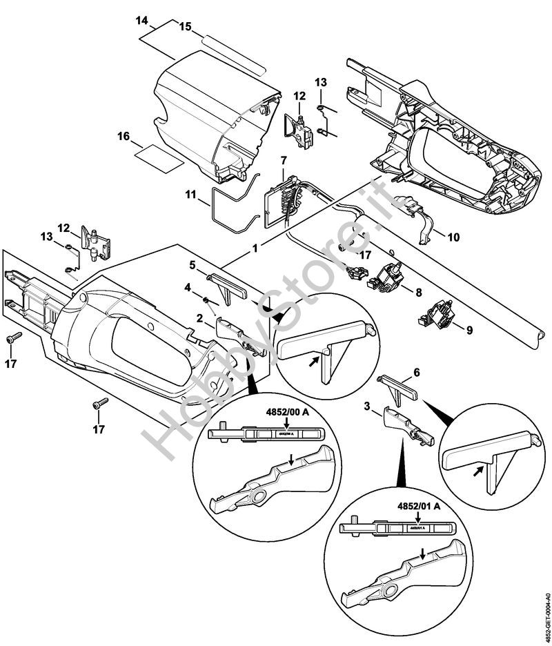 Ricambio Corpo impugnatura Decespugliatrici a batteria (FSA) FSA 65 STIHL Contiene anche i ricambi nr. 2, 4, 5