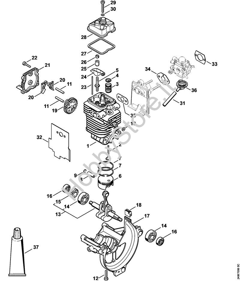 Ricambio originale Gruppo propulsore diam. 40 mm FT 100 FT 100 Stihl Contiene anche i ricambi da nr. 1 a 37