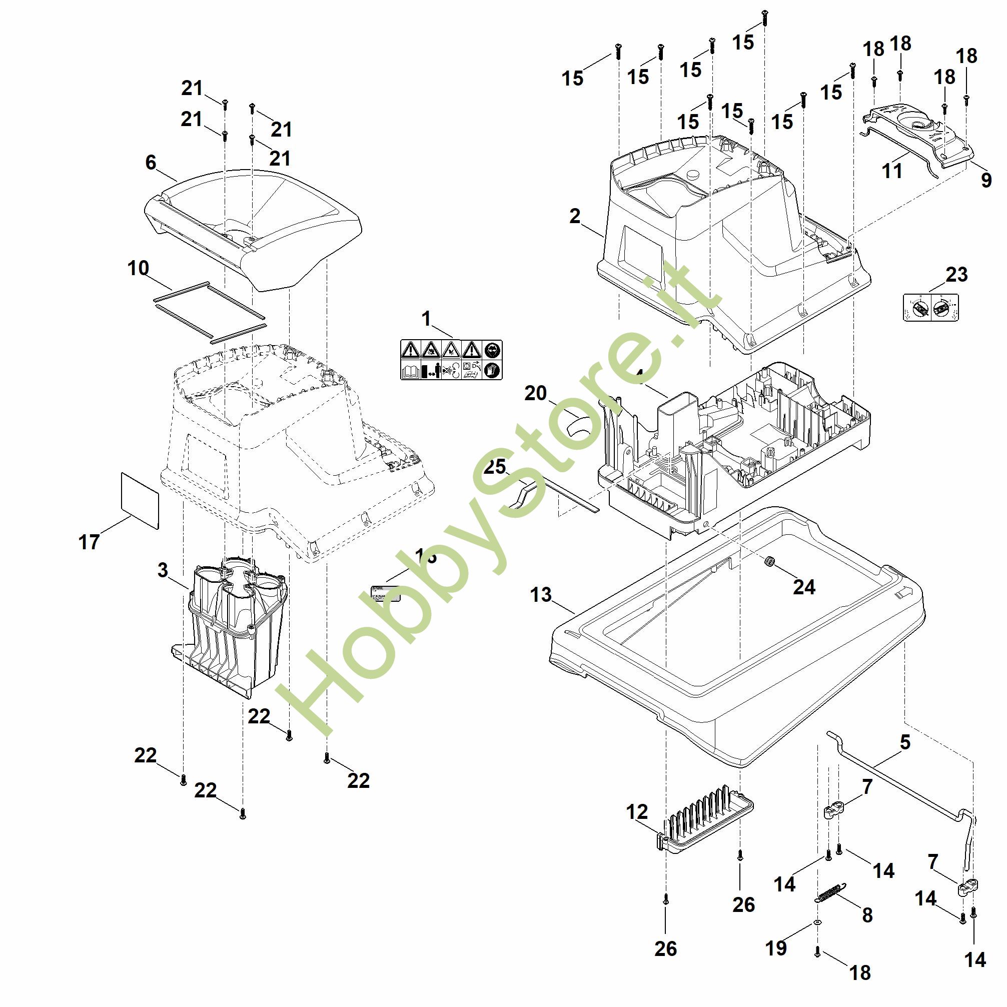 Ricambio Scocca Trituratori elettrici (GHE) GHE 140.0 L STIHL Contiene anche i ricambi nr. 12,24,25,26