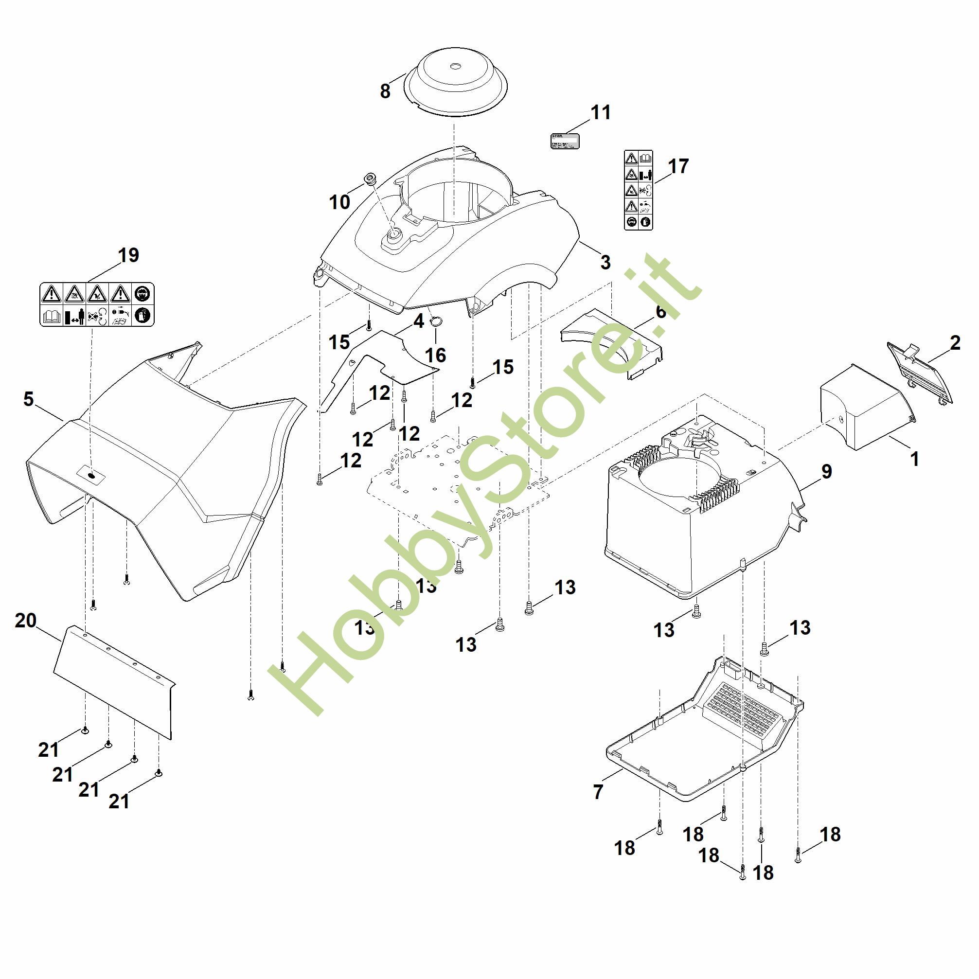 ATTENZIONE: Se nella lista sotto non compaiono i relativi ricambi riportati nell'esploso