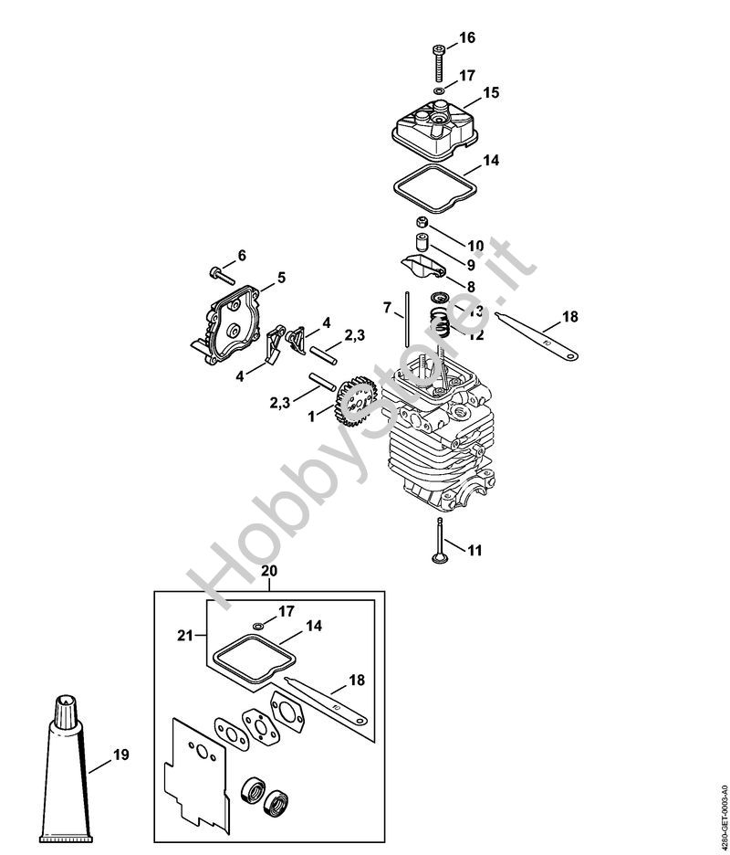 Ricambio Serie regolaz. gioco valvole Tosasiepi (HL) HL 100 STIHL Contiene anche i ricambi nr. 14, 17, 18