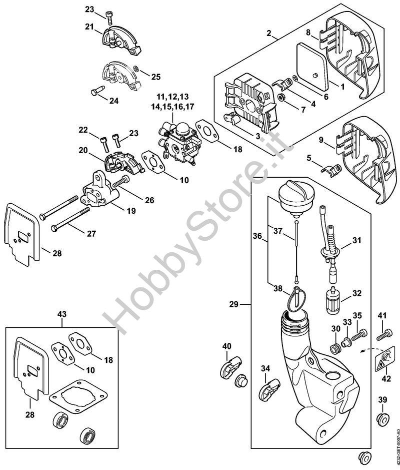 Ricambio Serbatoio carburante Tosasiepi (HL) HL 45 STIHL Contiene anche i ricambi da n. 30 a 38