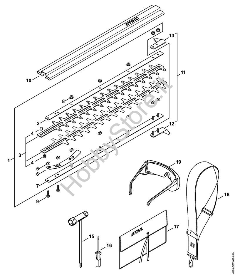 Ricambio Set protezione guida Tosasiepi (HL) HL 95 K STIHL Contiene anche i ricambi n. 12 e 13