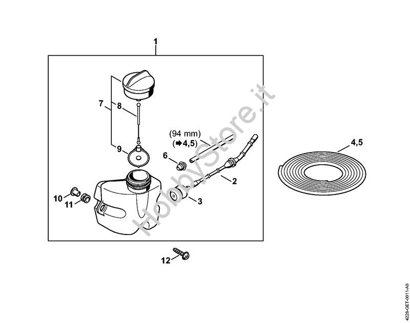 Ricambio Serbatoio carburante Tagliasiepi (HS) HS 45 STIHL Contiene anche i ricambi nr. 2, 3, 6 a 11