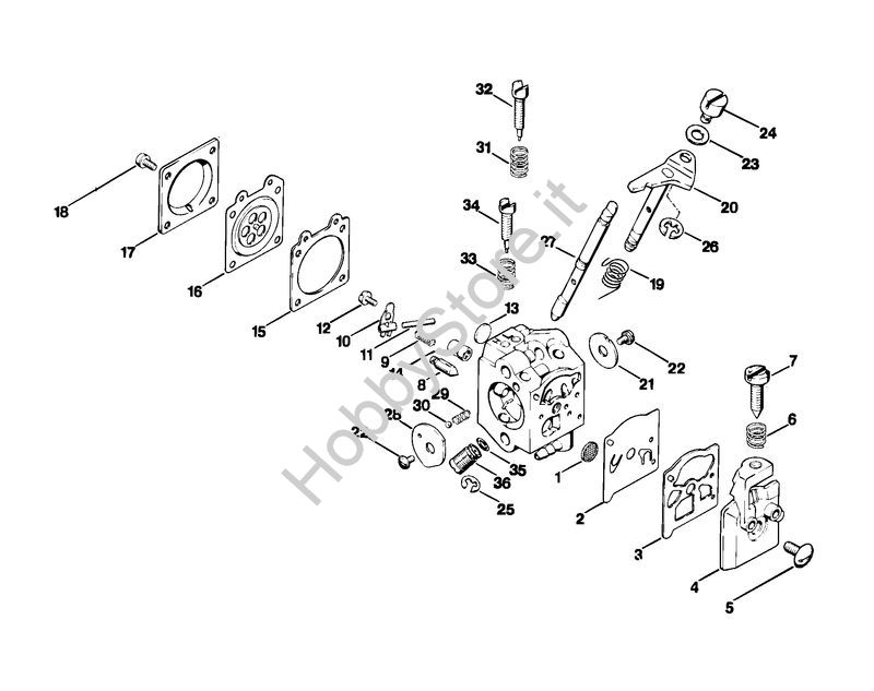 Ricambio Carburatore WT-189B Tagliasiepi (HS) HS 61 STIHL Contiene anche i ricambi da n. 1 a 36