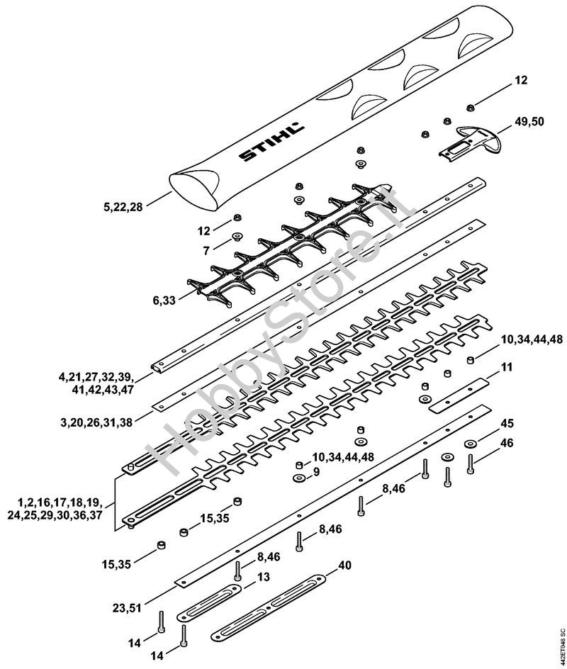 Ricambio Riparo guida Tagliasiepi (HS) HS 86 T STIHL Contiene anche i ricambi nr. 8, 12, 34, 35