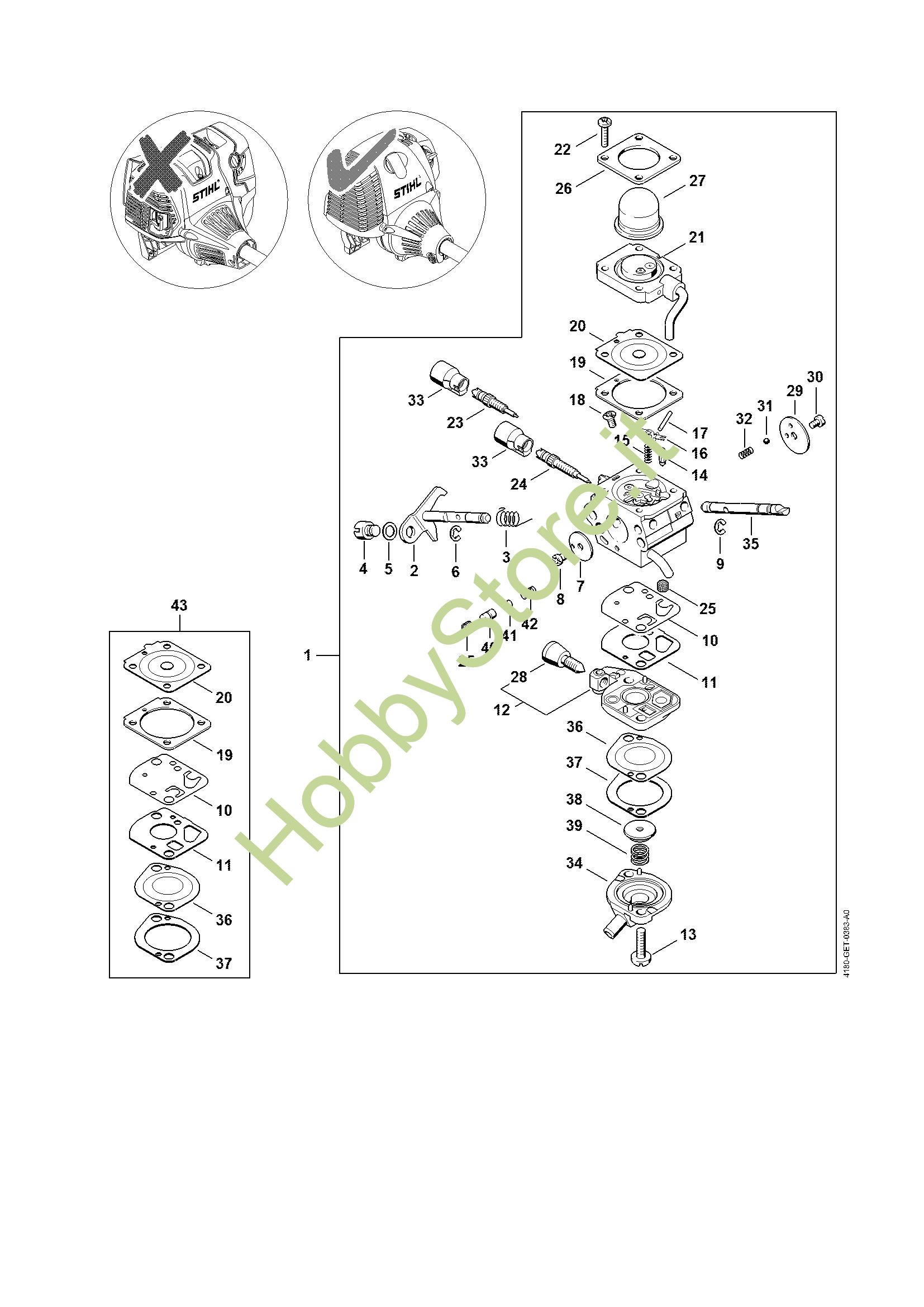 Ricambio Serie particolari carburatore Sramatori telescopici (HT) HT 101 STIHL