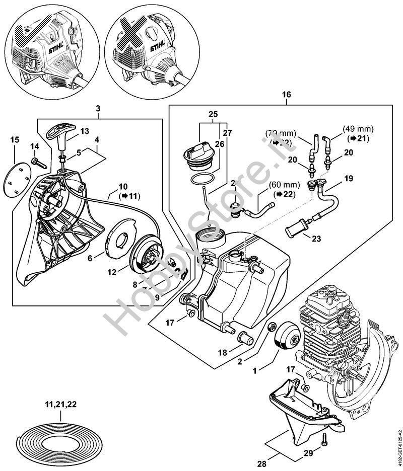 Ricambio Dispositivo di avviamento Sramatori telescopici (HT) HT 130 STIHL Contiene anche i ricambi da n. 4 a 13