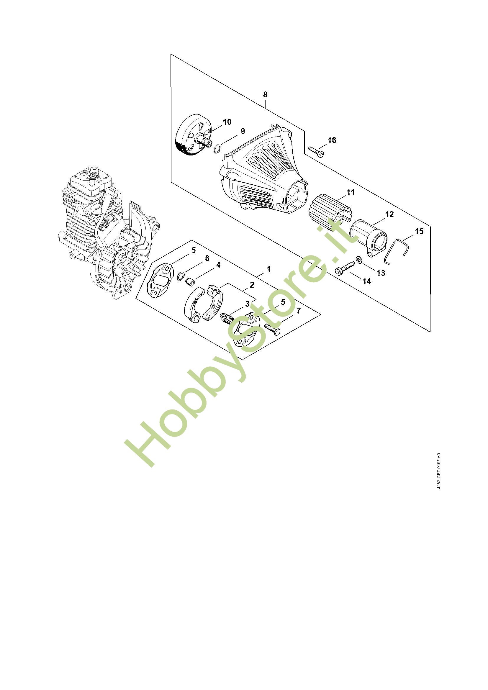 Ricambio Carenatura ventola Sramatori telescopici (HT) HT 133 STIHL Contiene anche i ricambi da n. 9 a 15