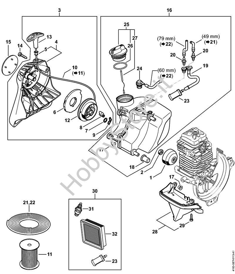 Ricambio Dispositivo di avviamento Sramatori telescopici (HT) HT 134 STIHL Contiene anche i ricambi nr. da 4 a 10, 12, 13