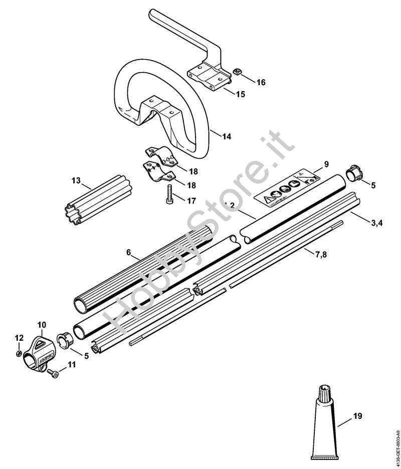 Ricambio Impugnatura circolare Sramatori telescopici (HT) HT 70 STIHL Contiene anche i ricambi da n. 15 a 18