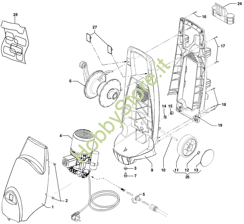 Ricambio Kit avvolgitubo Carcassa IP 1400 Idropulitrice della marca Efco Richiede pezzi:1