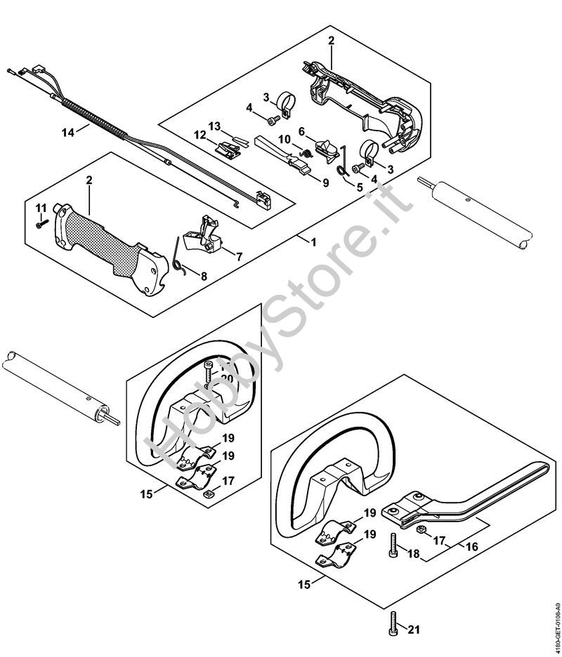 Ricambio Impugnatura circolare Motori Kombi (KM) KM 100 R STIHL Contiene anche i ricambi da n. 16 a 20