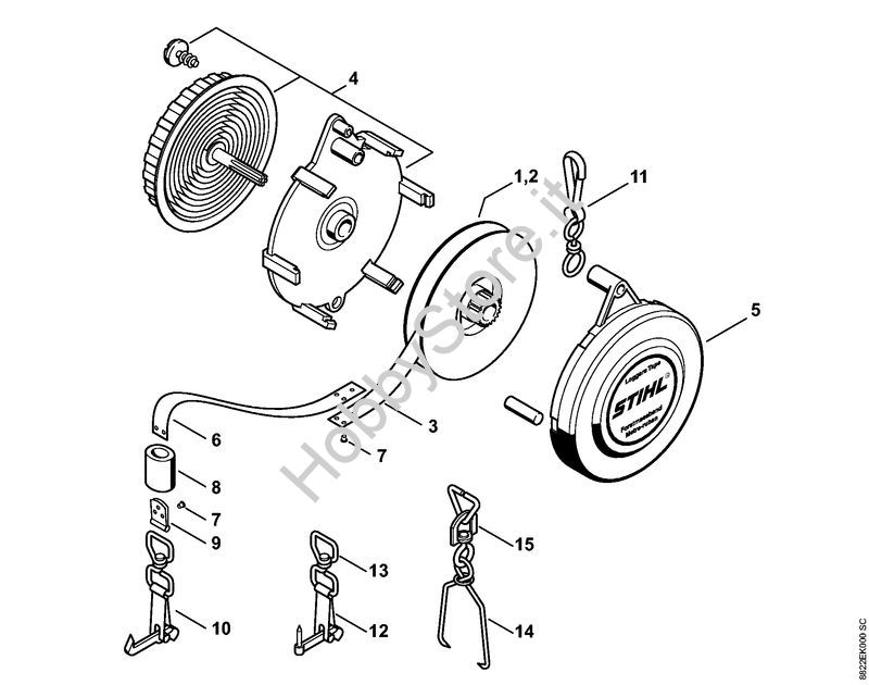 Ricambio Sede molla completa Strumenti di misura Metro a nastro per uso forestale 15 m PE STIHL