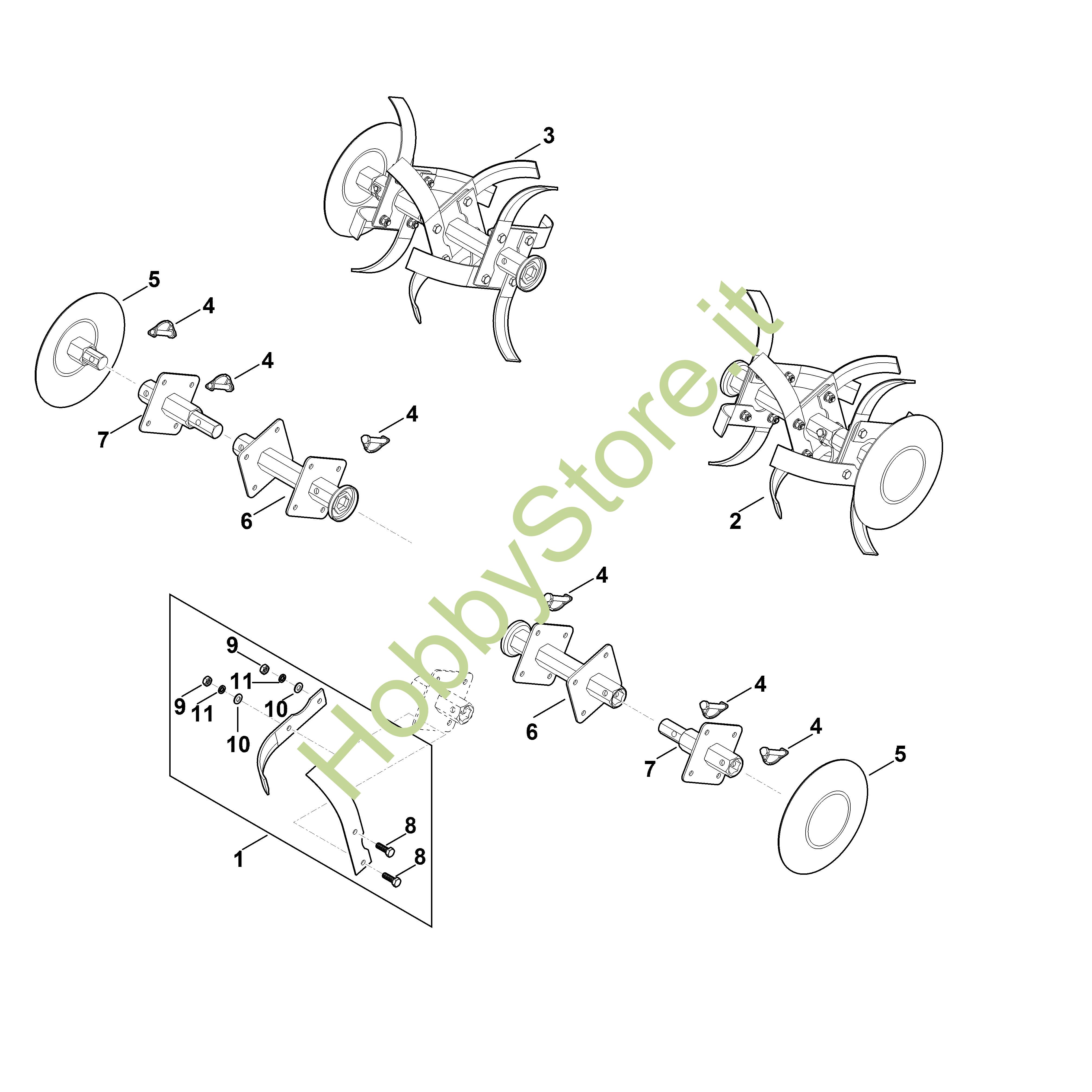 Ricambio Kit per riparazioni (lame zappatura) MH MH 610.0 STIHL Contiene anche i ricambi da n. 8 a 11
