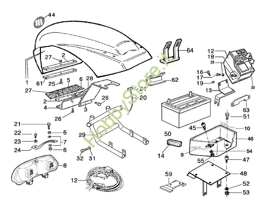 Ricambio Batteria 6LD Cofano (Vers. 3) MAK 16 (Fino/Until 2012) Motocoltivatore della marca Nibbi Richiede pezzi:1