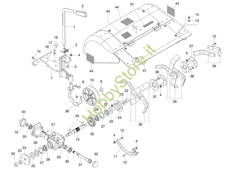 Ricambio Asta Fresa 70 cm con cofano registrabile e attacco fisso 69219065 KAM 4 (EN 709) Motocoltivatore della marca Nibbi Richiede pezzi:1