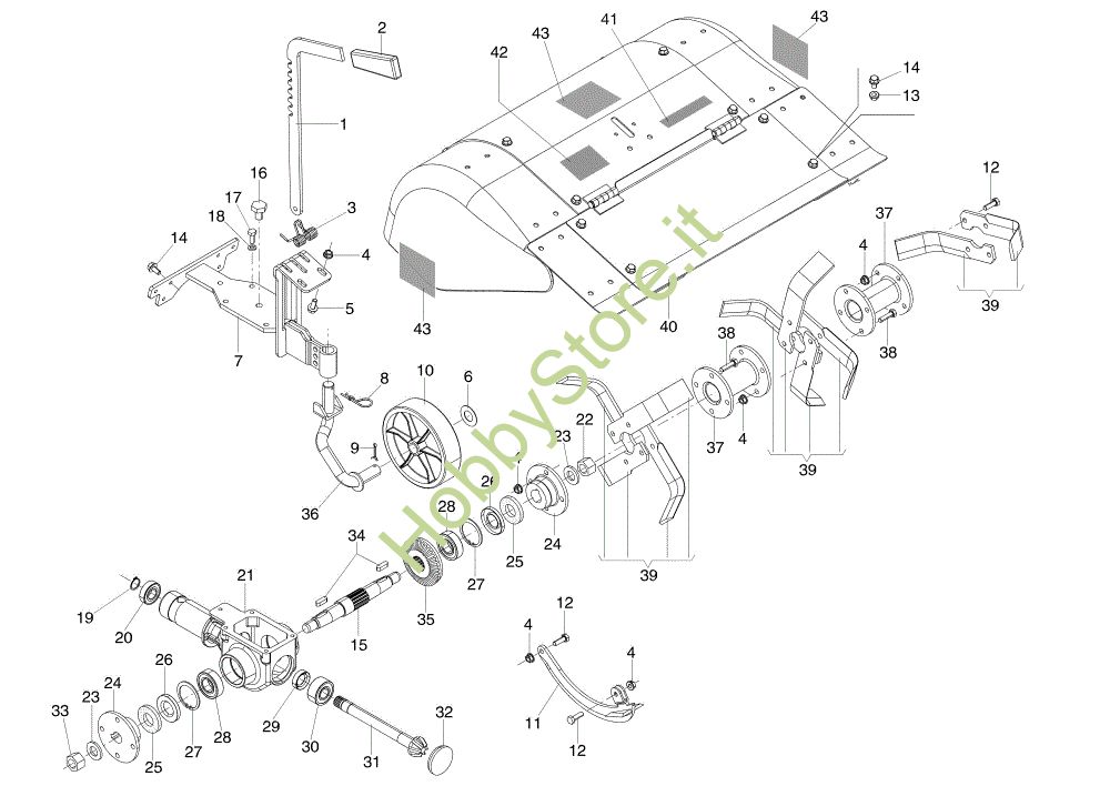 Ricambio Pignone Fresa 70 cm con cofano registrabile e attacco quickfit 69219059 KAM 13 S Motocoltivatore della marca Nibbi Richiede pezzi:1