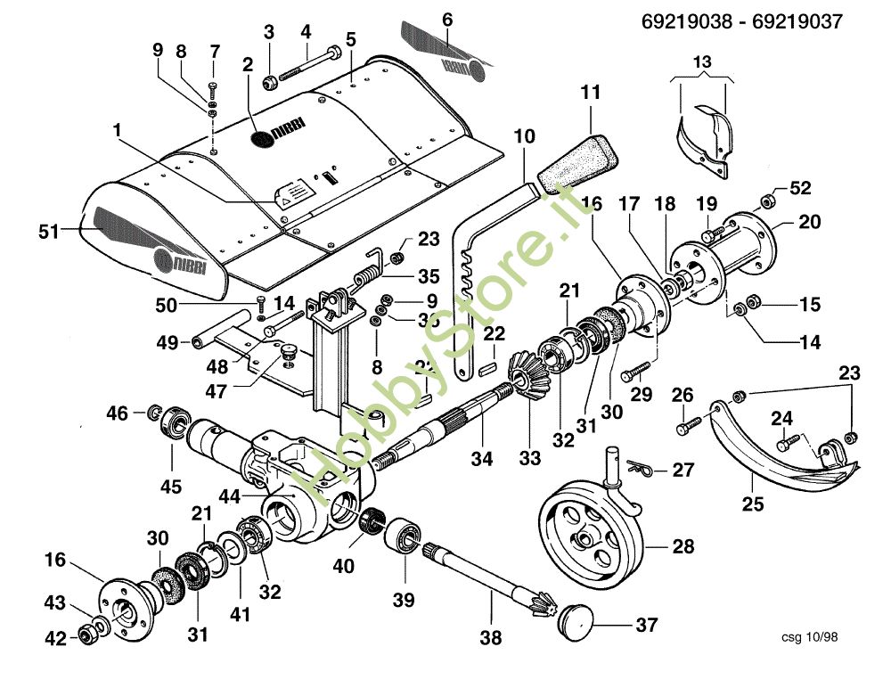 Ricambio Testa oscillante Fresa con quickfit 69219038/69219037 KAM 4 (Fino/Until 2012) Motocoltivatore della marca Nibbi Richiede pezzi:1