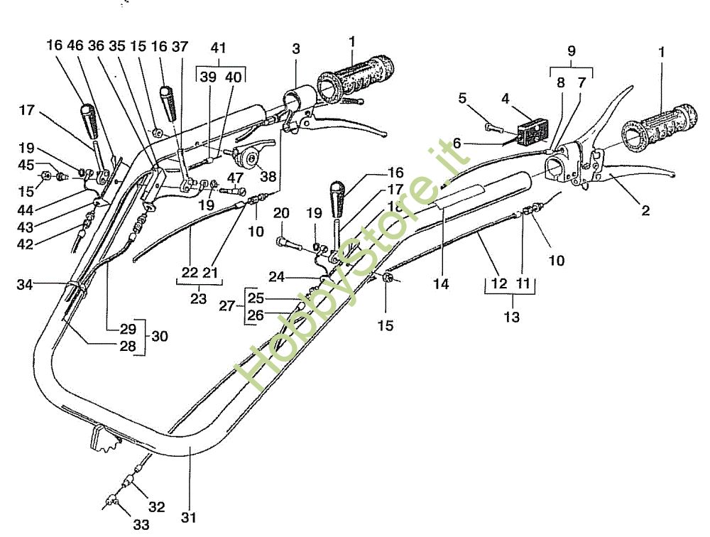 Ricambio Maniglia 31/12/2010 Due freni; Two breaks Manubrio 508 / 508 CDA Motocoltivatore della marca Nibbi Richiede pezzi:1