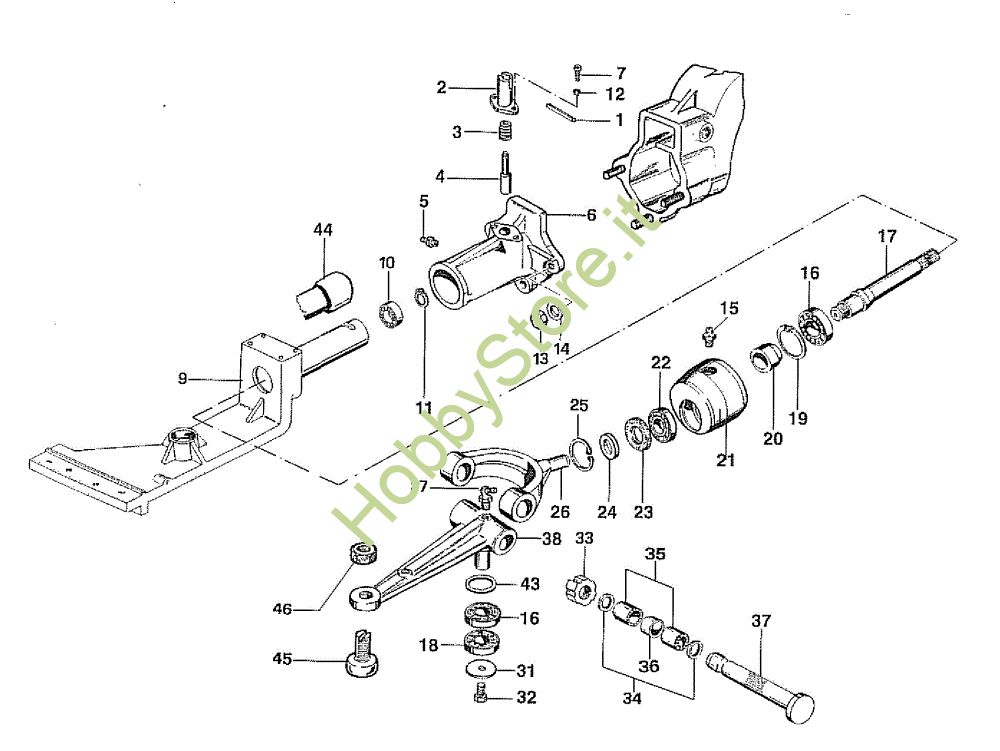 Ricambio Asse-andana SX; LEFT Movimento barra (Attacco registrabile) 506 / 506 CDA Motocoltivatore della marca Nibbi Richiede pezzi:1