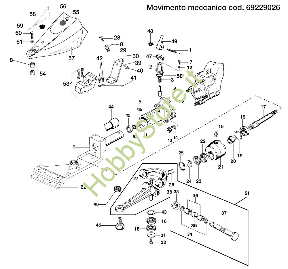 Ricambio Testa oscillante Movimento meccanico 69229026 KAM 5 JUNIOR (Solo per il mercato francese) EN 709 Motocoltivatore della marca Nibbi Richiede pezzi:1