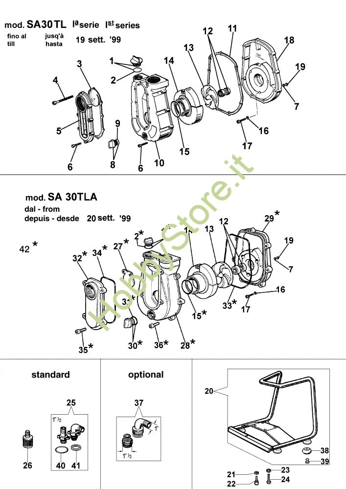 In caso di ordine di ricambi per il tuo prodotto SA 30 TLA Motopompa della Oleo-Mac, per permettere al nostro staff di spedirti i ricambi corretti, inserire, nella pagina finale del carrello nel campo Note varie, anno della macchina e, se disponibile, il suo numero di matricola.