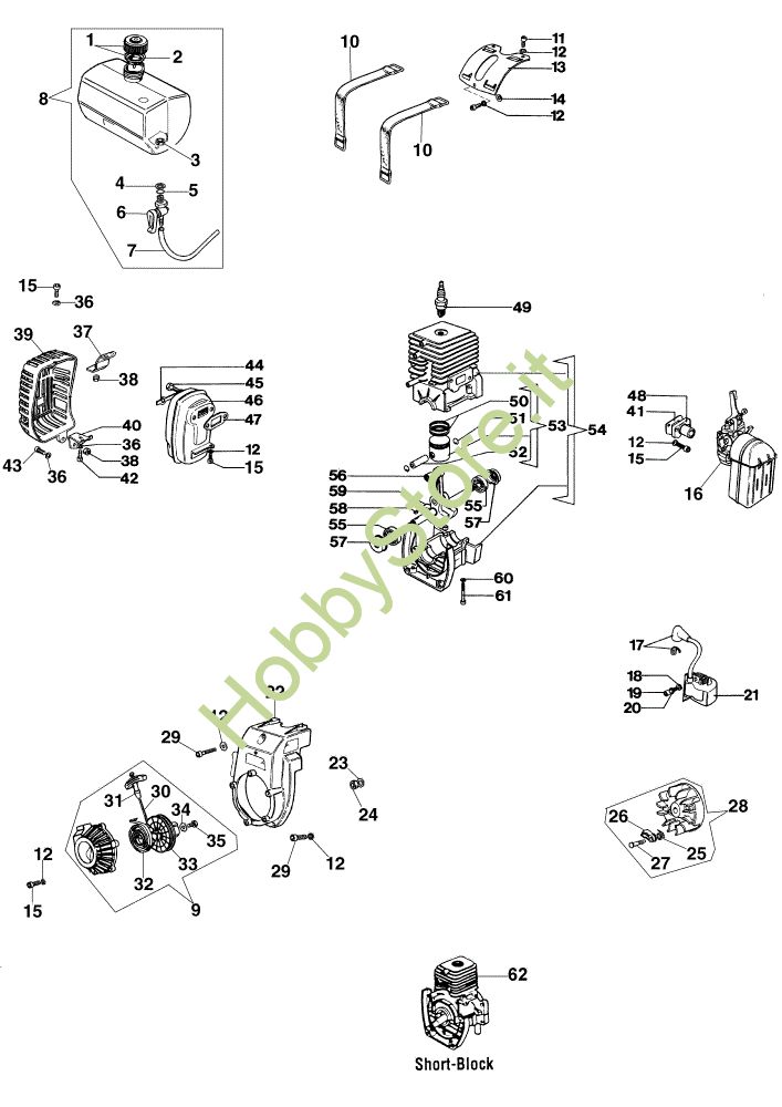 Ricambio Short block Motore 2° serie SA 18 Motopompa della marca Oleo-Mac Richiede pezzi:1