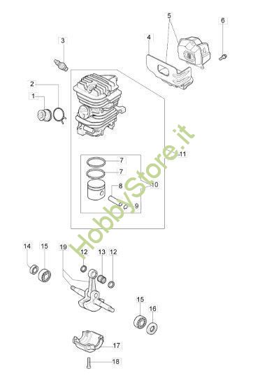 Tavola tecnica del motore per la motosega GS 410 CX della Oleomac
