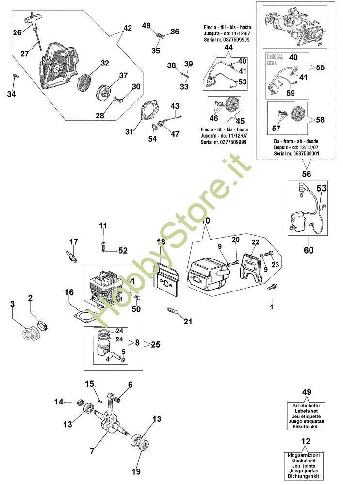 Ricambio Kit guarnizioni Avviamento e motore 156 Motosega della marca Efco Richiede pezzi:1