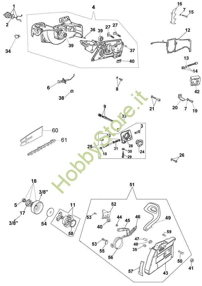 Ricambio Copricatena completo BT4-094-10/08 Basamento e freno 165 HD Motosega della marca Efco Richiede pezzi:1