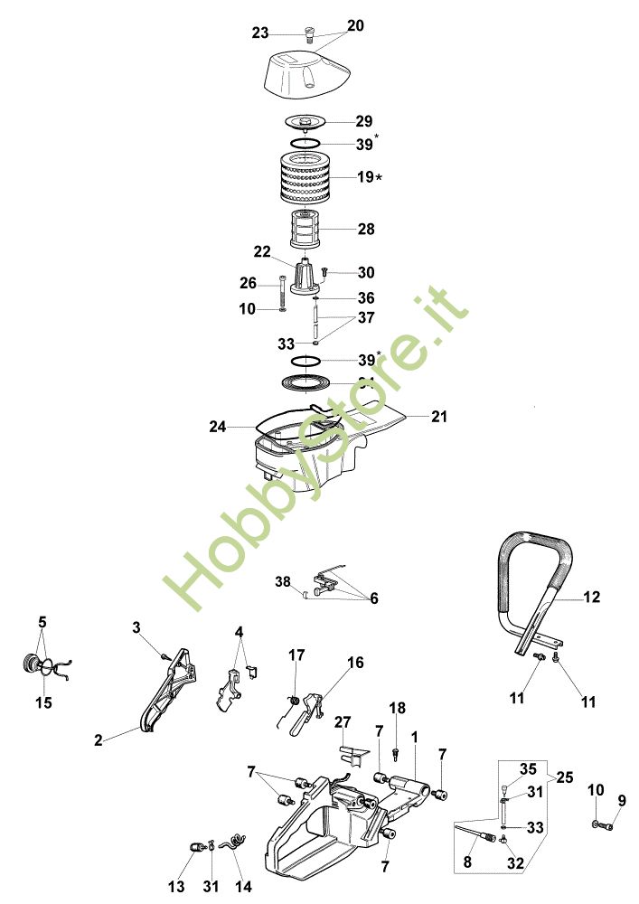 Ricambio Asta Filtro aria e serbatoio 985 HD Motosega della marca Oleo-Mac Richiede pezzi:1
