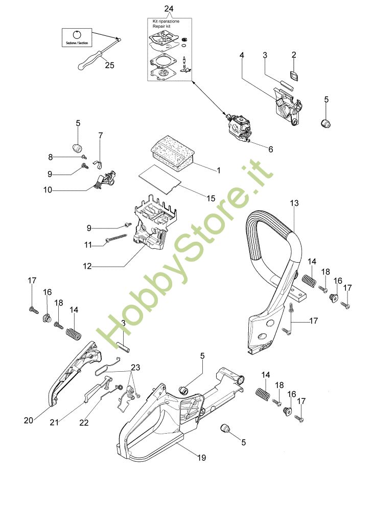 Ricambio Kit riparazione Impugnatura e filtro aria GS 35 Motosega della marca Oleo-Mac Richiede pezzi:1