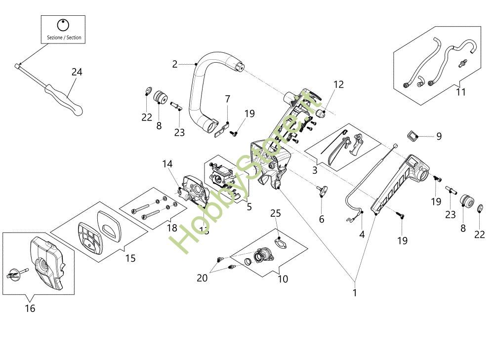 Ricambio kit tubi Impugnatura e filtro aria GSTH 240 Motosega della marca Oleo-Mac Richiede pezzi:1