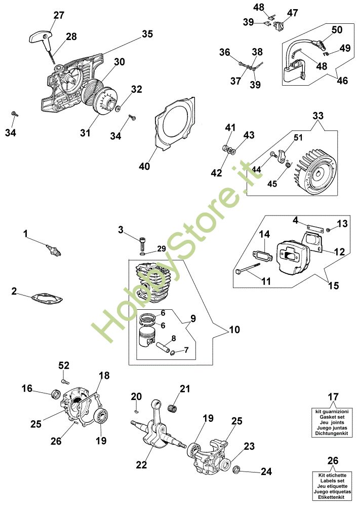 Ricambio Kit guarnizioni Motore 942 Motosega della marca Oleo-Mac Richiede pezzi:1
