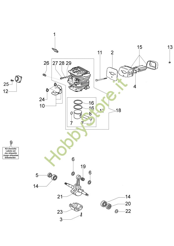 Ricambio Cilindro completo Ø40 Motore GS 940 Motosega della marca Oleo-Mac Richiede pezzi:1