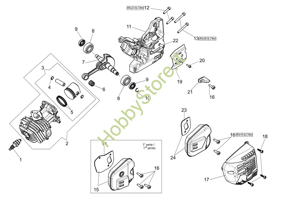 Ricambio Kit cilindro e pistone Motore GST 360 Motosega della marca Oleo-Mac Richiede pezzi:1