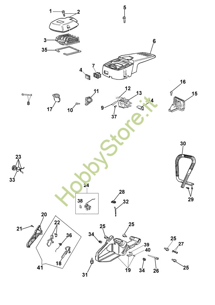 Ricambio Manico Serbatoio e filtro aria 965 HD Motosega della marca Oleo-Mac Richiede pezzi:1