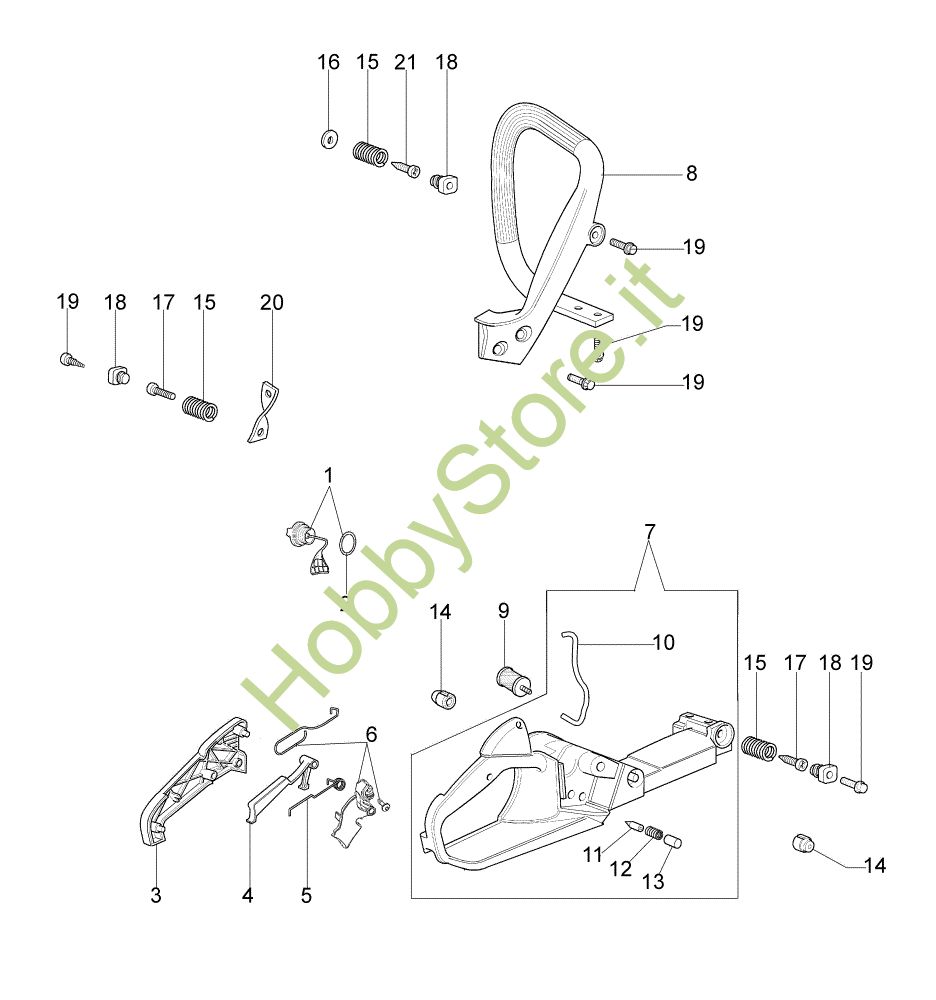 Ricambio Kit acceleratore Serbatoio e impugnatura GS 440 (Euro 2) Motosega della marca Oleo-Mac Richiede pezzi:1