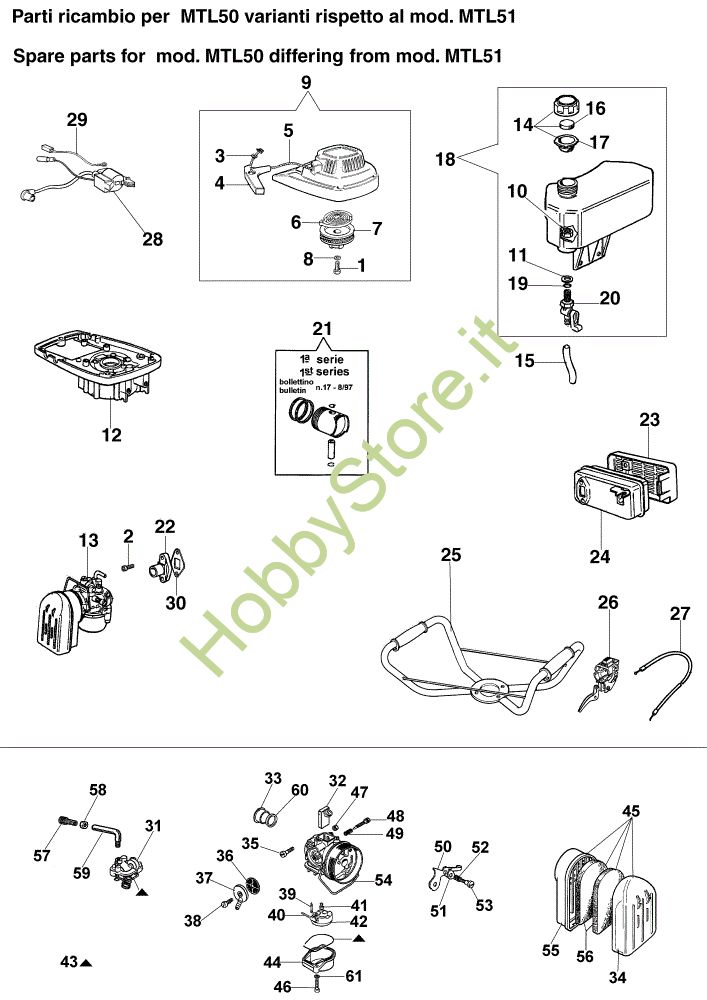 In caso di ordine di ricambi per il tuo prodotto MTL 50 Mototrivella della Oleo-Mac, per permettere al nostro staff di spedirti i ricambi corretti, inserire, nella pagina finale del carrello nel campo Note varie, anno della macchina e, se disponibile, il suo numero di matricola.