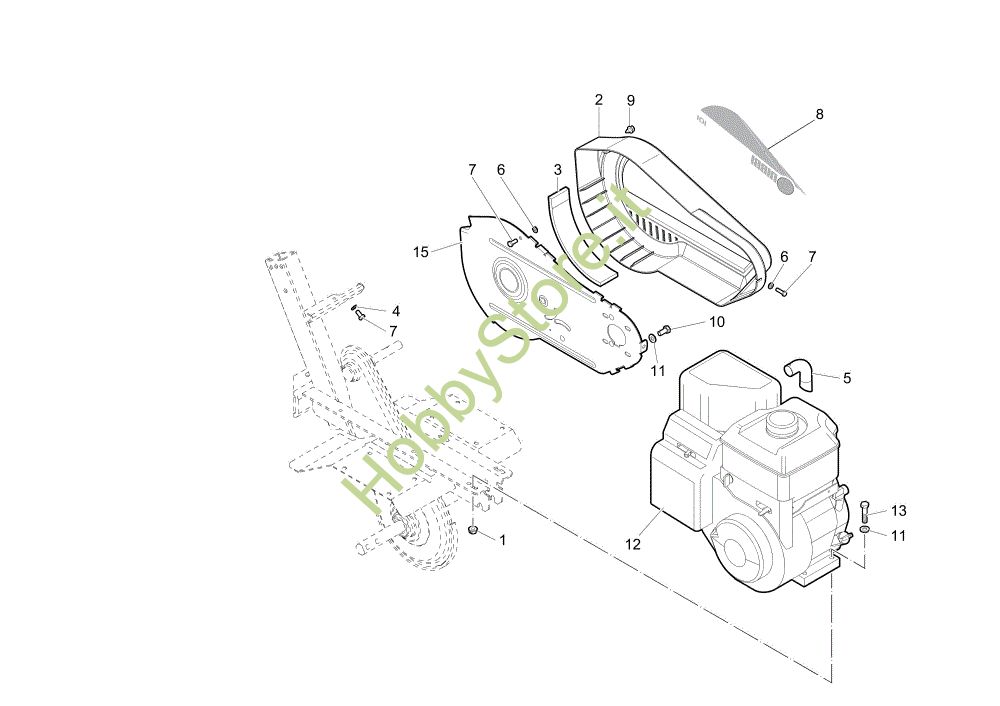 Ricambio Terminale GX160 UE; GX160 Extra UE; Cofanature 101 (EN 709) (K800 H - SN T210) Motozappa della marca Nibbi Richiede pezzi:1