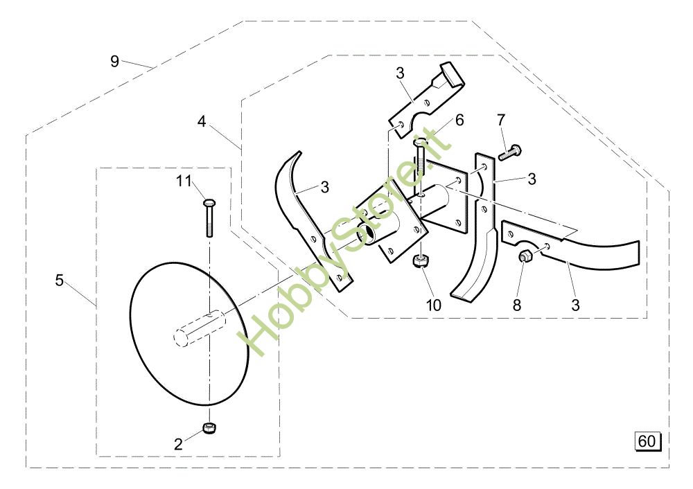 Ricambio Rotore (Completo) Kit 60 cm composto da: Fresa 101 (EN 709) (K800 H - SN T210) Motozappa della marca Nibbi Richiede pezzi:1
