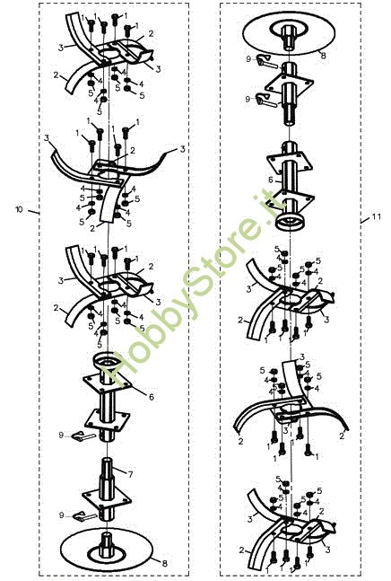 Ricambio Kit coltelli Sinistro; Left Fresa MH 175 RK (K800 HT) Motozappa della marca Oleo-Mac Richiede pezzi:1